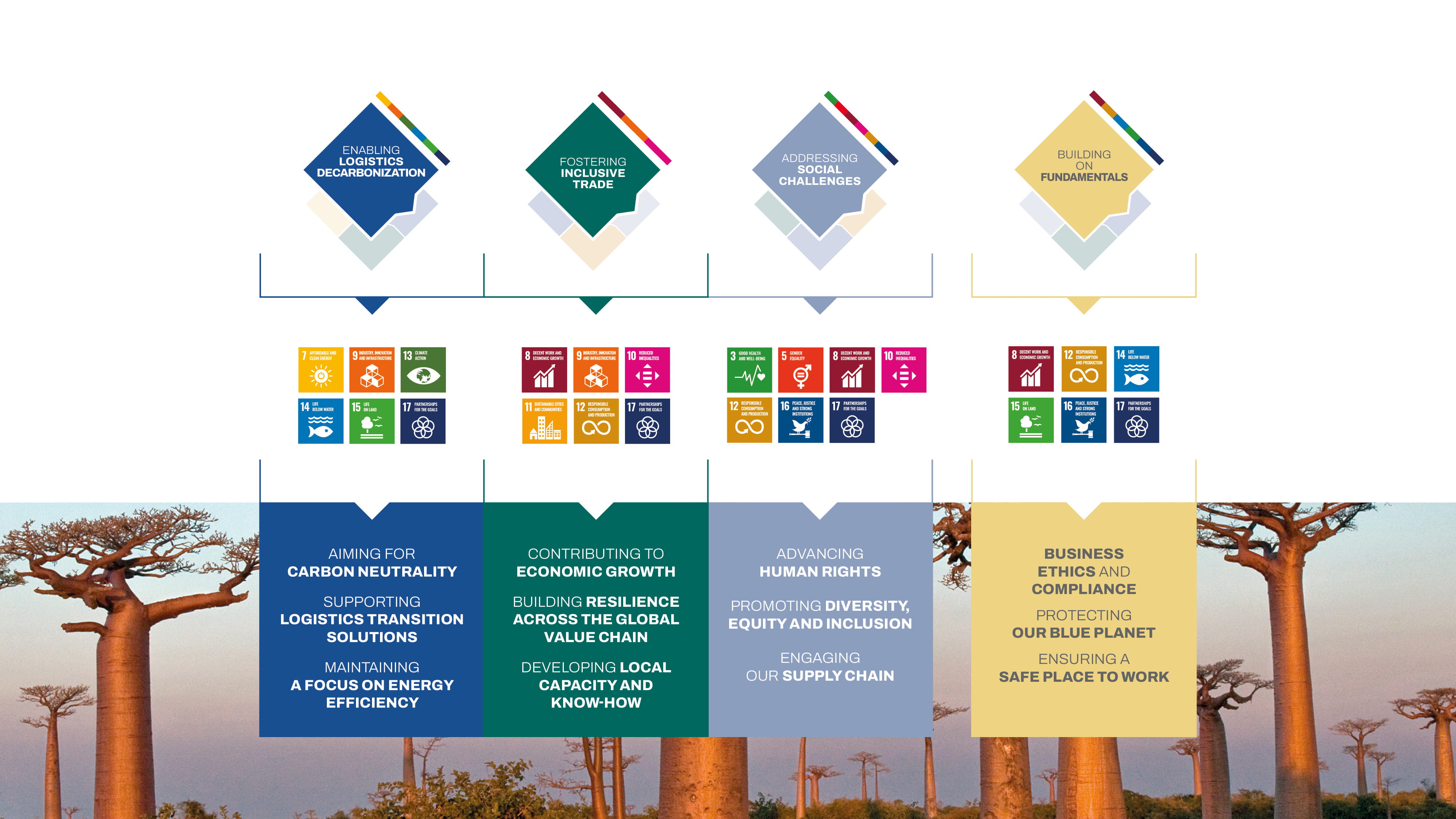 我们以可持续发展路线为准绳,积极发挥自身力量,参与构建弹性供应链,同时立足于自身坚实的基础,为员工、客户、社区和地球创造价值。在 MSC 的整个货运部门,我们以可持续发展路线和三大可持续发展重点为指导方针,积极履行“实现可持续发展”的重要承诺。