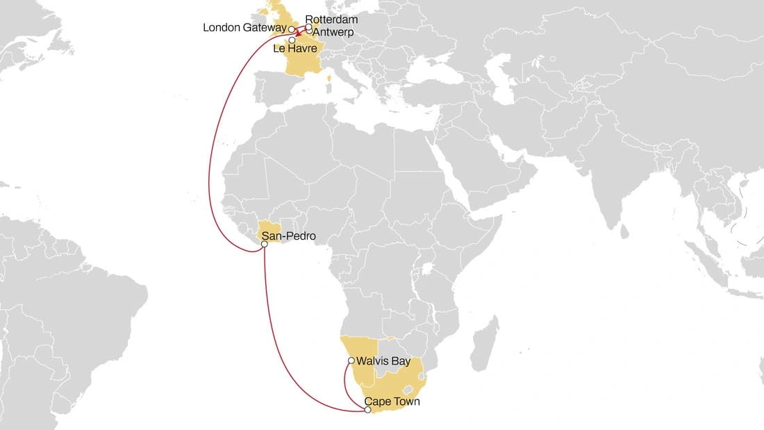 Walvis Bay – Cape Town – San Pedro – London Gateway – Rotterdam – Antwerp – Le Havre
