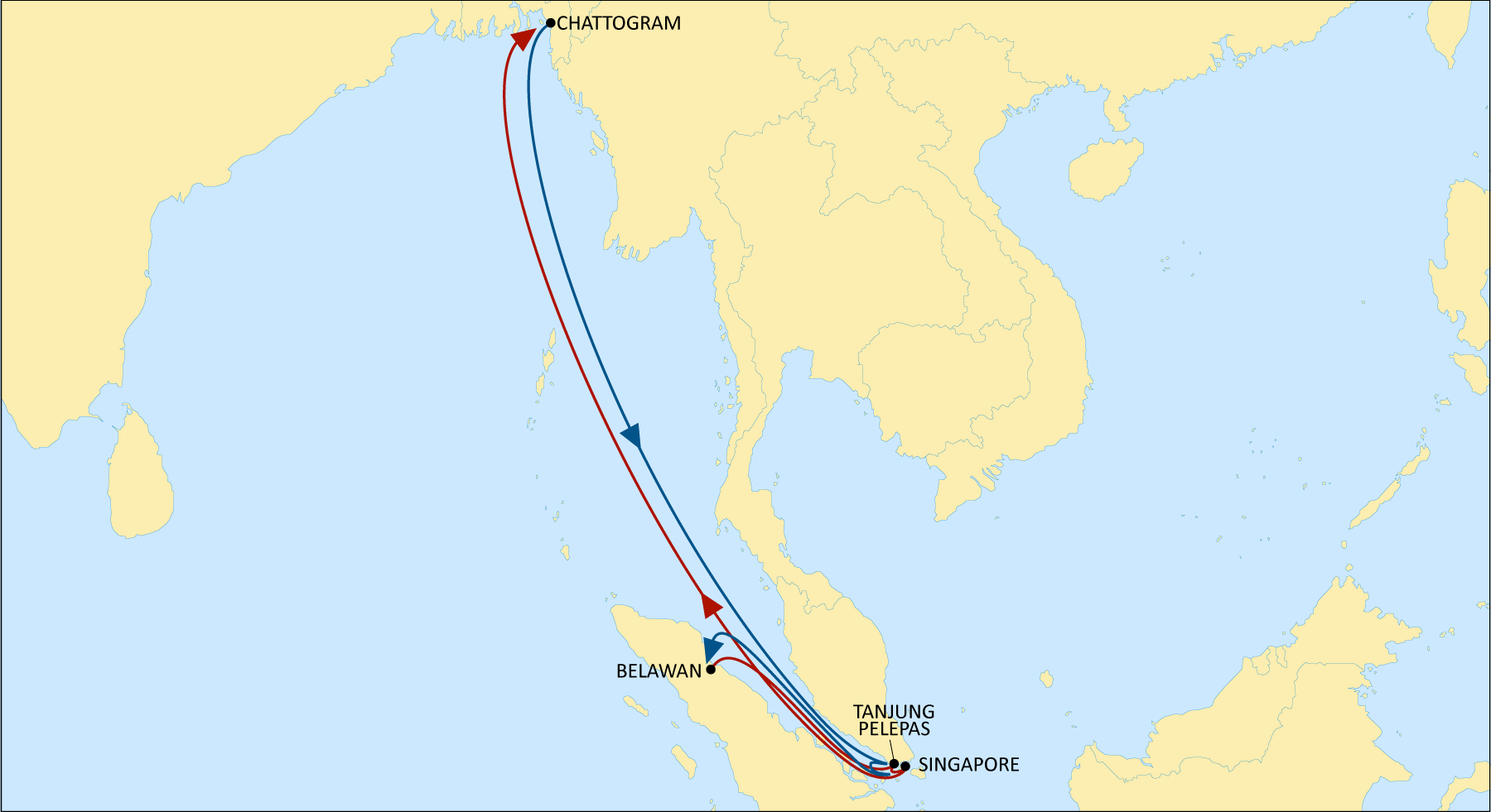 Belawan – Tanjung Pelepas – Singapore – Chattogram – Tanjung Pelepas – Singapore – Belawan