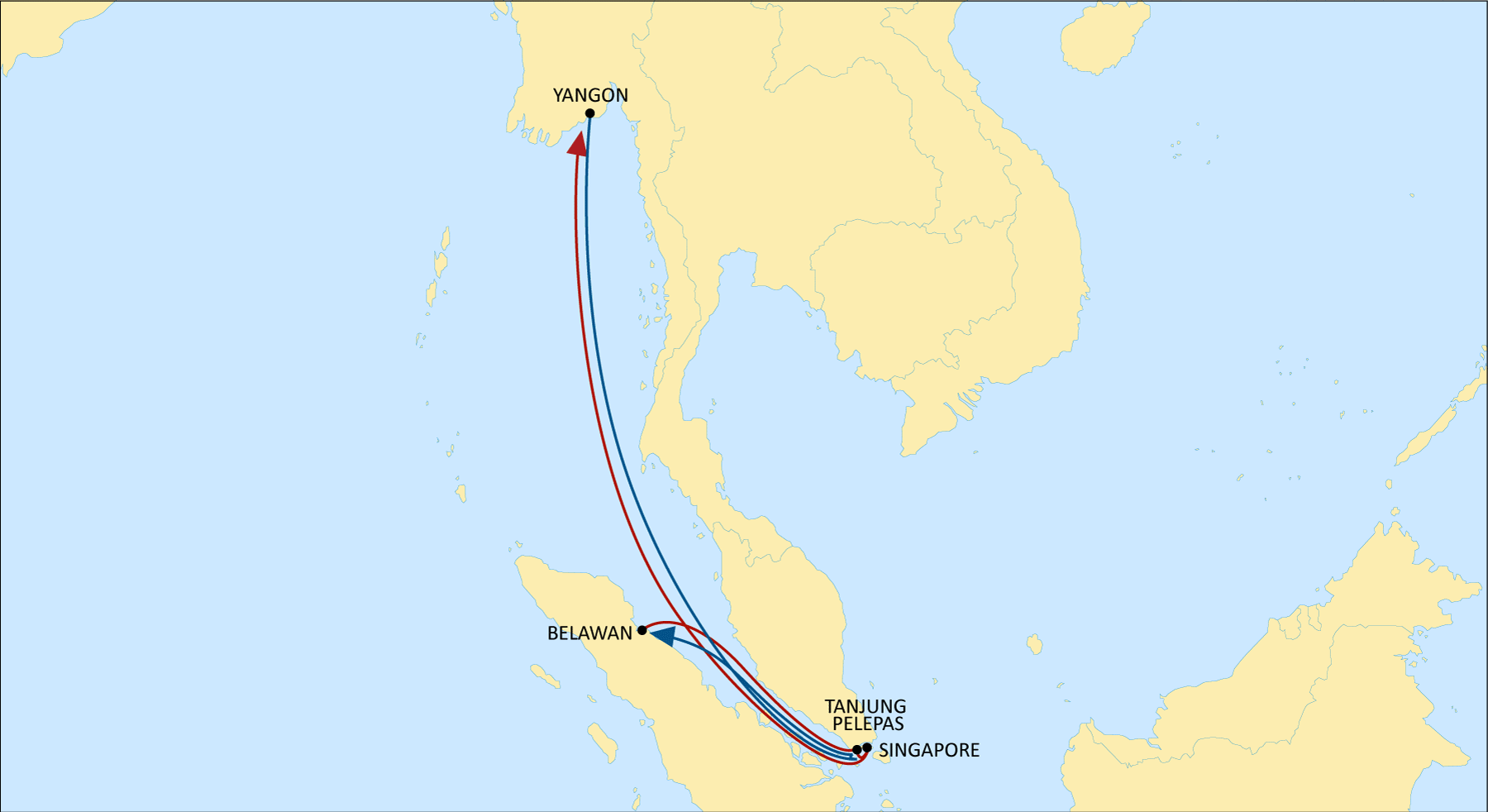 Belawan – Singapore – Tanjung Pelepas – Yangon – Singapore – Tanjung Pelepas – Belawan
