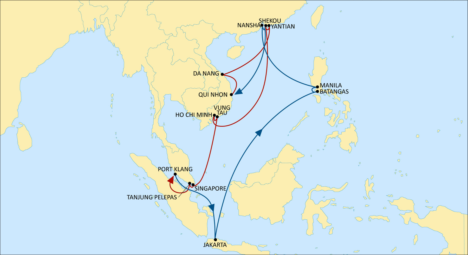 Qui Nhon – Da Nang – Yantian – Shekou – Ho Chi Minh – Vung Tau – Singapore – Tanjung Pelepas – Port Klang – Jakarta – Batangas – Manila – Nansha – Shekou – Qui Nhon