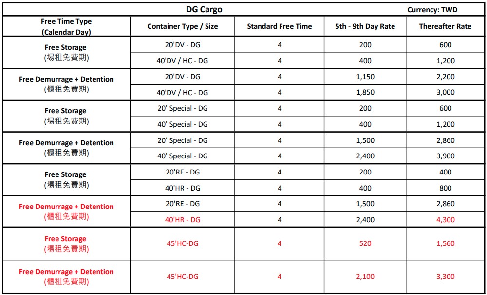 - Free time is calculated from the date of vessel arrival, or from the date of the laden container gate-in of inland transshipment cargo via Trucking service.
