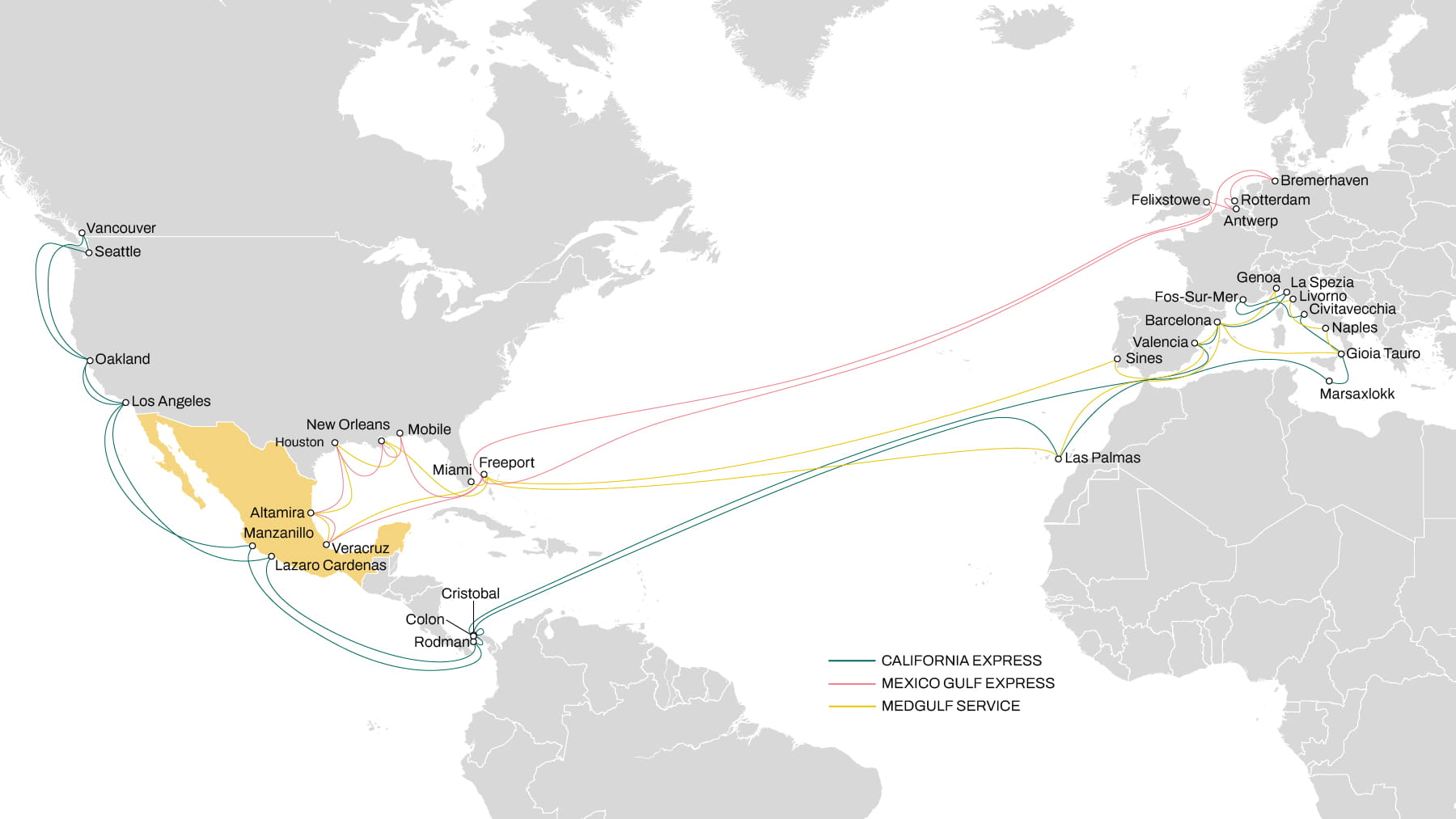 - Weekly departures from South of Italy (Napoli and Gioia Tauro) to Mexico East coast