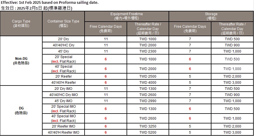 - Free time is calculated from the date of vessel arrival, or from the date of the laden container gate-in of inland transshipment cargo via Trucking service.