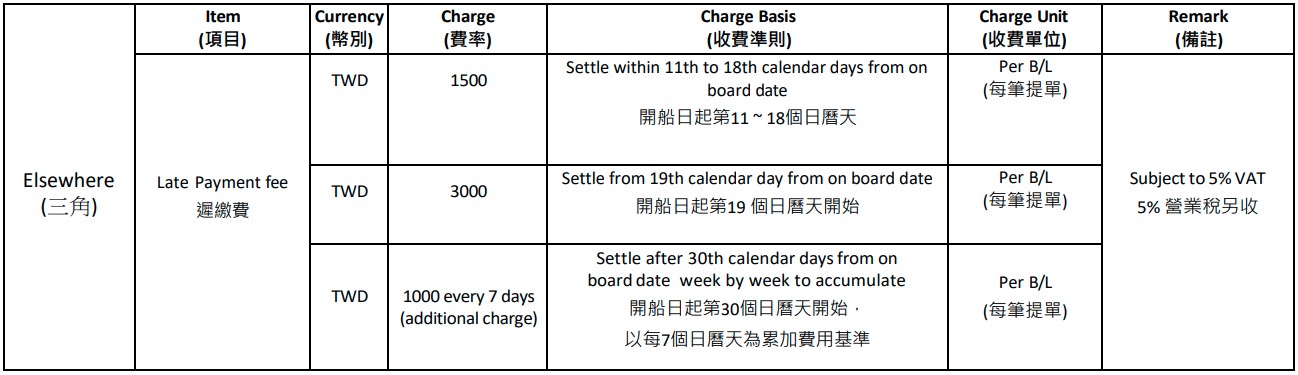 MSC Taiwan Local Charges – ELSEWHERE ( subject to 5% vat)
