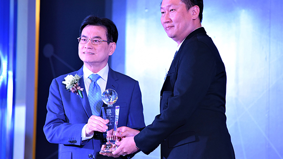 MSC Thailand’s Commercial Manager, Viroj Rekacharoenphan (right) receiving the award on behalf of MSC from the Deputy Prime Minister of Thailand, Mr Jurin Laksanawisit.